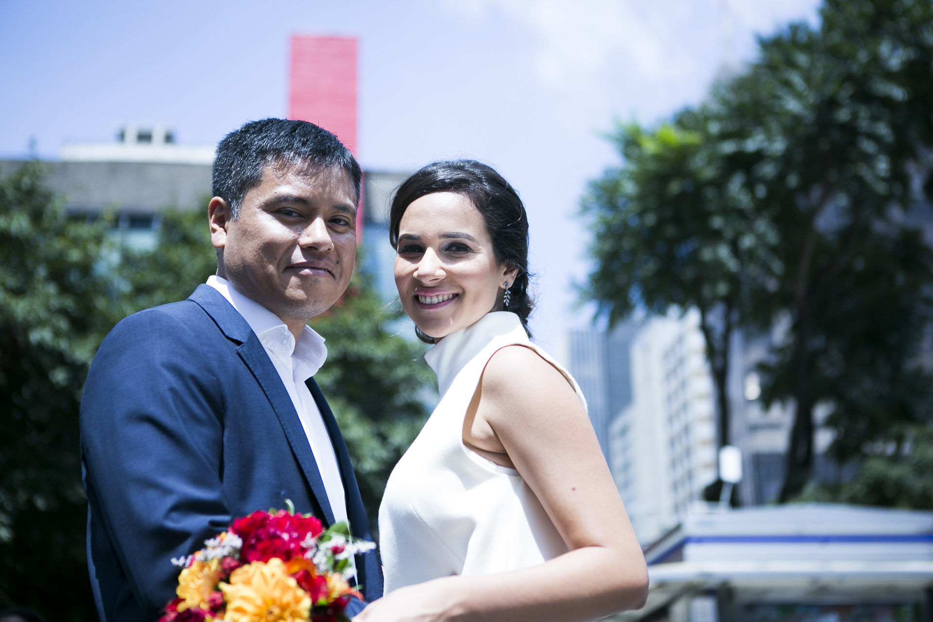 então tive a ideia de propor um pequeno ensaio na Avenida Paulista, e quando terminou o ensaio um olha para o outro e diz, “era isso que precisávamos como recordação do Brasil”. Essa foto representa bem o momento em que eles suspiraram.